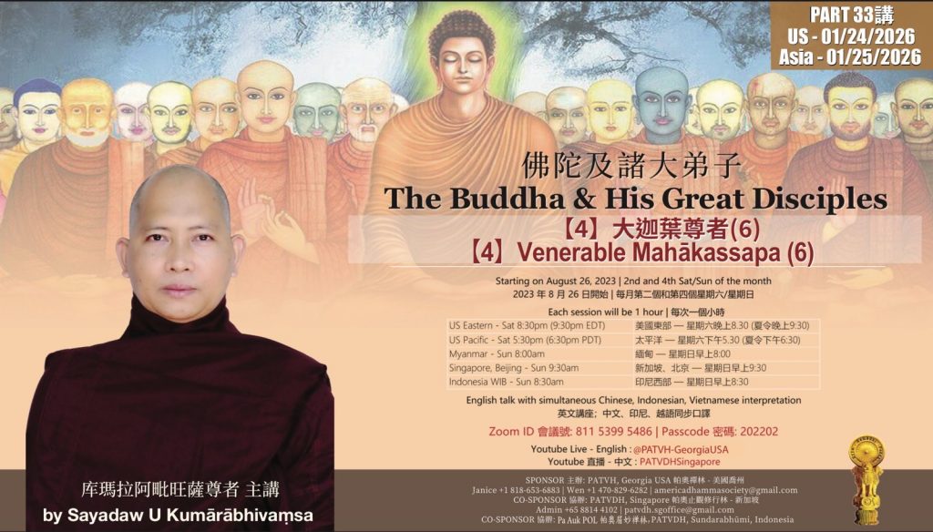 🙏🙏 Teachings by Sayadaw U Janakābhivaṃsa from June 9, 2024 to July 5, 2024 daily from Dhammadāyāda Meditation Center in Nepal was successfully concluded. 感恩迦納卡阿毗旺薩尊者2024 年 6月9日 到7 月 5 日 帕奧尼泊爾止觀禪修營的線上講座。 Details.
